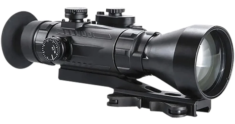 The Wolverine Pro is our military grade level Night Vision sight. The Wolverine Pro utilizes a high strength aluminum design to service the rugged day-to-day requirements and ever-changing environments. Except for the optical elements, all external surfaces utilize a non-reflective matte black finish. The external objective lens and eyepiece lens elements are protected with an ultra-durable (scratch-resistant) coating. Controls and adjustments are easy to operate and include reticle brightness, eyepiece focus, range (distance) focus, plus windage and elevation adjustments.