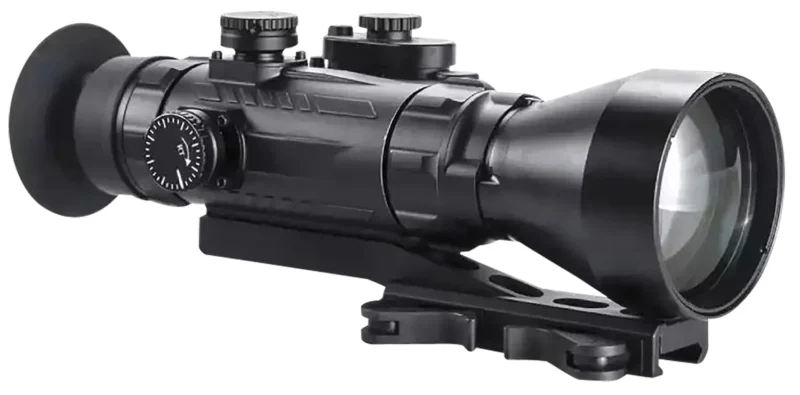 The Wolverine Pro is our military grade level Night Vision sight. The Wolverine Pro utilizes a high strength aluminum design to service the rugged day-to-day requirements and ever-changing environments. Except for the optical elements, all external surfaces utilize a non-reflective matte black finish. The external objective lens and eyepiece lens elements are protected with an ultra-durable (scratch-resistant) coating. Controls and adjustments are easy to operate and include reticle brightness, eyepiece focus, range (distance) focus, plus windage and elevation adjustments.