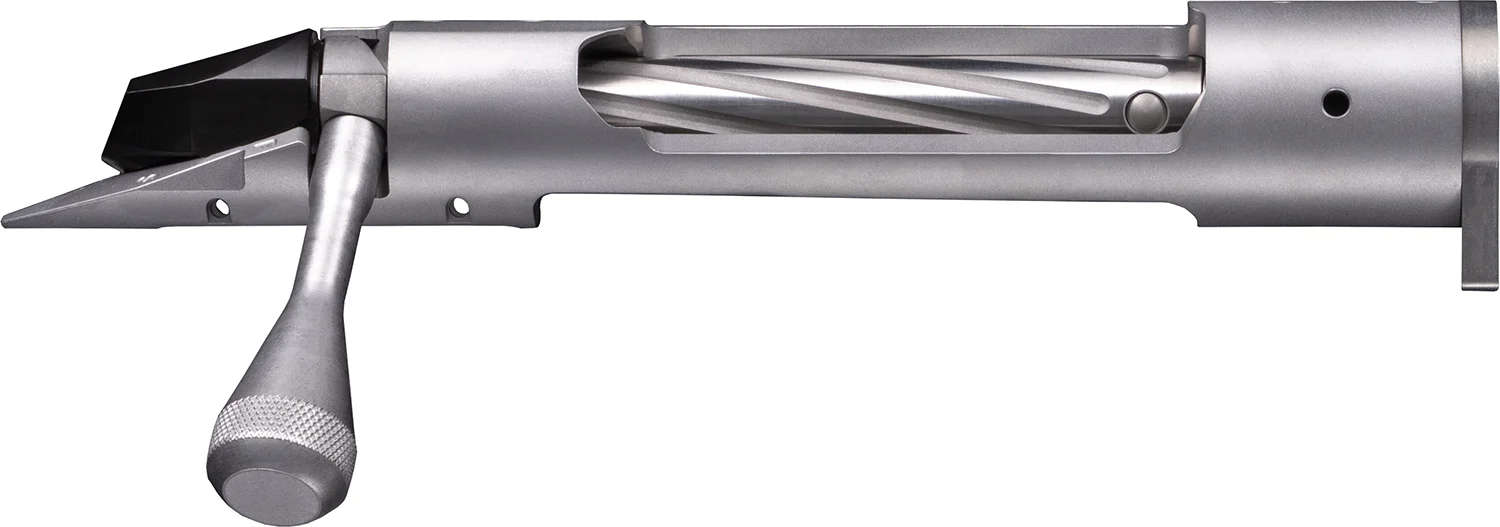 The Premier Actions are precision-crafted in the USA from 416 Stainless Steel, designed to fit most Remington 700 style stocks and chassis. These actions feature an enlarged bolt handle, spiral-fluted body, dual ejector, sliding plate extractor, and compatibility with Rem 700 style scope bases with an 8-40 screw pattern, and they accept Rem 700 triggers for enhanced versatility.