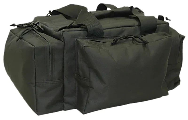 The Boyt Max-Ops Tactical Range Bag is constructed of a water resistant coated polyester with self repairing nylon zippers, foam padding, one front zippered storage pocket (11.5″ x 7.5″), two side zippered storage pocket (10″ x 7.5″), magazine storage pocket, poly webbing carry handles and shoulder strap.