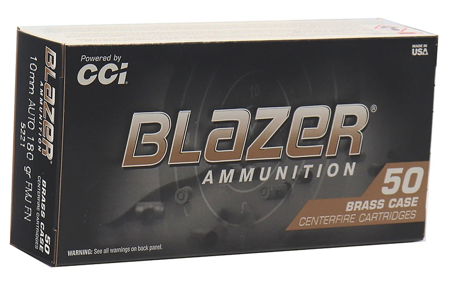 CCI 5221 Blazer Brass Handgun 10mmAuto 180gr Full Metal Jacket 50 Per Box/20 Case