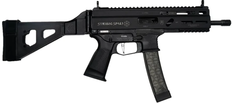 Grand Power Stribog 9mm Luger, roller delayed blowback and SB Tactical brace. Includes three 30rd magazines.