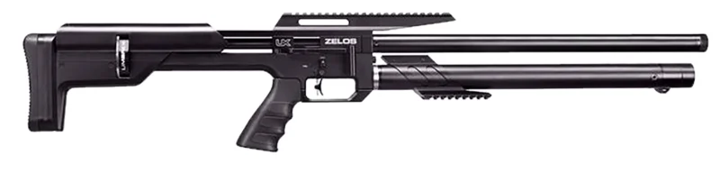 The PileDriver is optimized for high-power hunting applications, it can produce over 900 FPE in the .45 caliber model. With a long, 33-inch precision rifled barrel, this bullpup design keeps the max length under 4 feet. While getting up to 6 high-powered shots at optimal velocity, there is also a max effective big game hunting range of up to 120 yards. With its single-shot, extra-large loading port, the Piledriver can accommodate ammo up to 34mm in length.