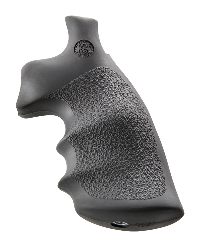 Hogue rubber grips are molded from durable synthetic rubber that is not spongy or tacky, yet provides a soft recoil absorbing feel without affecting accuracy. The flexibility of the materials and molding process produces rubber grips with features that out perform all other makes. It is molded with a reinforcing insert directly engaging with the firearm frame for a rock-solid grip-to-frame fit. The Cobblestone texture provides an efficient non-slip, non-irritating stippling pattern. This Conversion Monogrip model has an black finish and is compatible with S&W K/L frame with round butt.