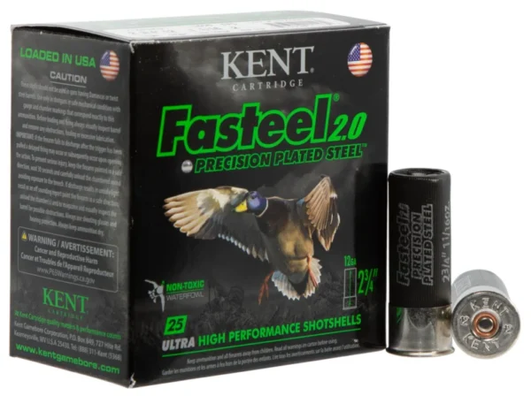 Kent Cartridge K122FS302 Fasteel 2.0 12 Gauge 2.75″ 1 1/16 oz 2 Shot 25 Per Box/ 10 Case