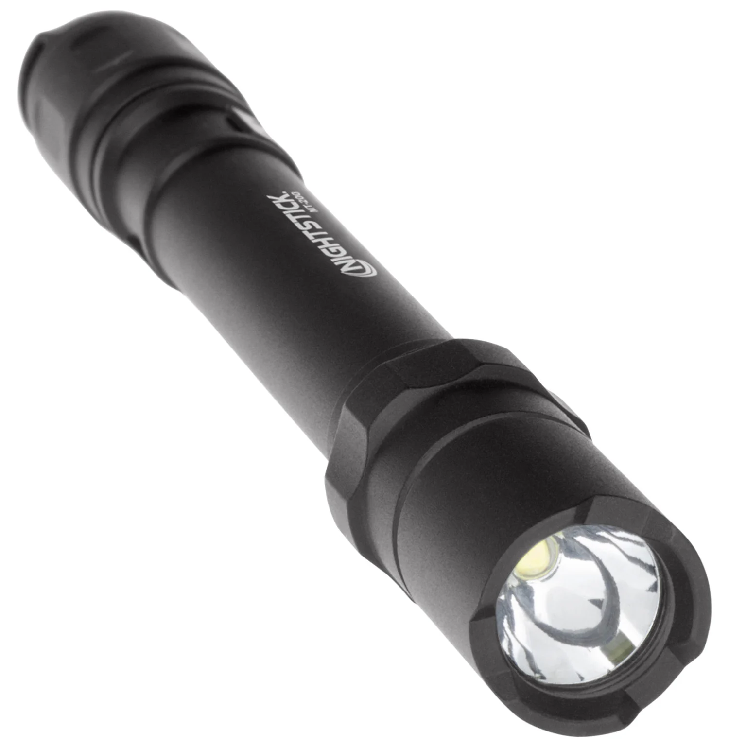 This 2 AAA Mini-TAC Pro light uses a deep parabolic reflector creating a tight, long-throw beam for distance illumination. With a waterproof design, it is constructed from aircraft-grade 6061-T6 aluminum with a Type III hard-anodized finish. The tail switch provides momentary or constant-on functionality, a set of user-selectable high, medium or low-brightness settings as well as a disorienting strobe. The light comes with a removable pocket clip and is powered by two included AAA batteries.