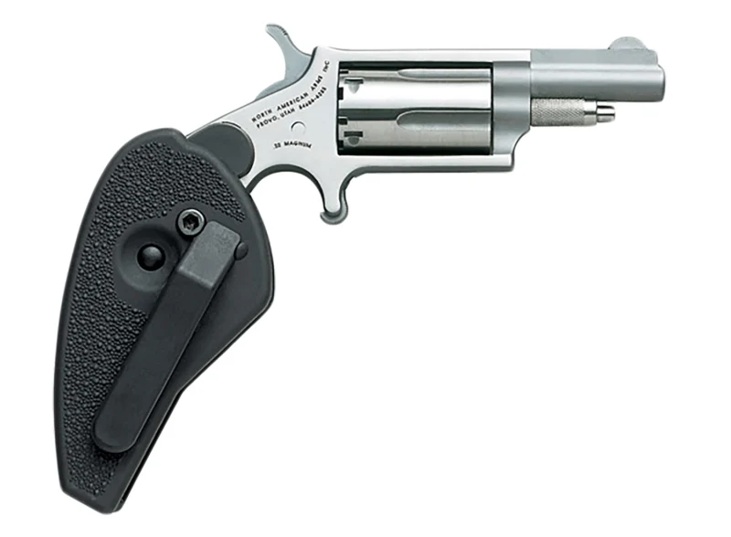 North American Arms 22MHG Mini-Revolver 22 WMR 5 Shot 1.63″ Stainless Steel Barrel, Frame & Cylinder, Black Synthetic Holster Grip, Exposed Hammer