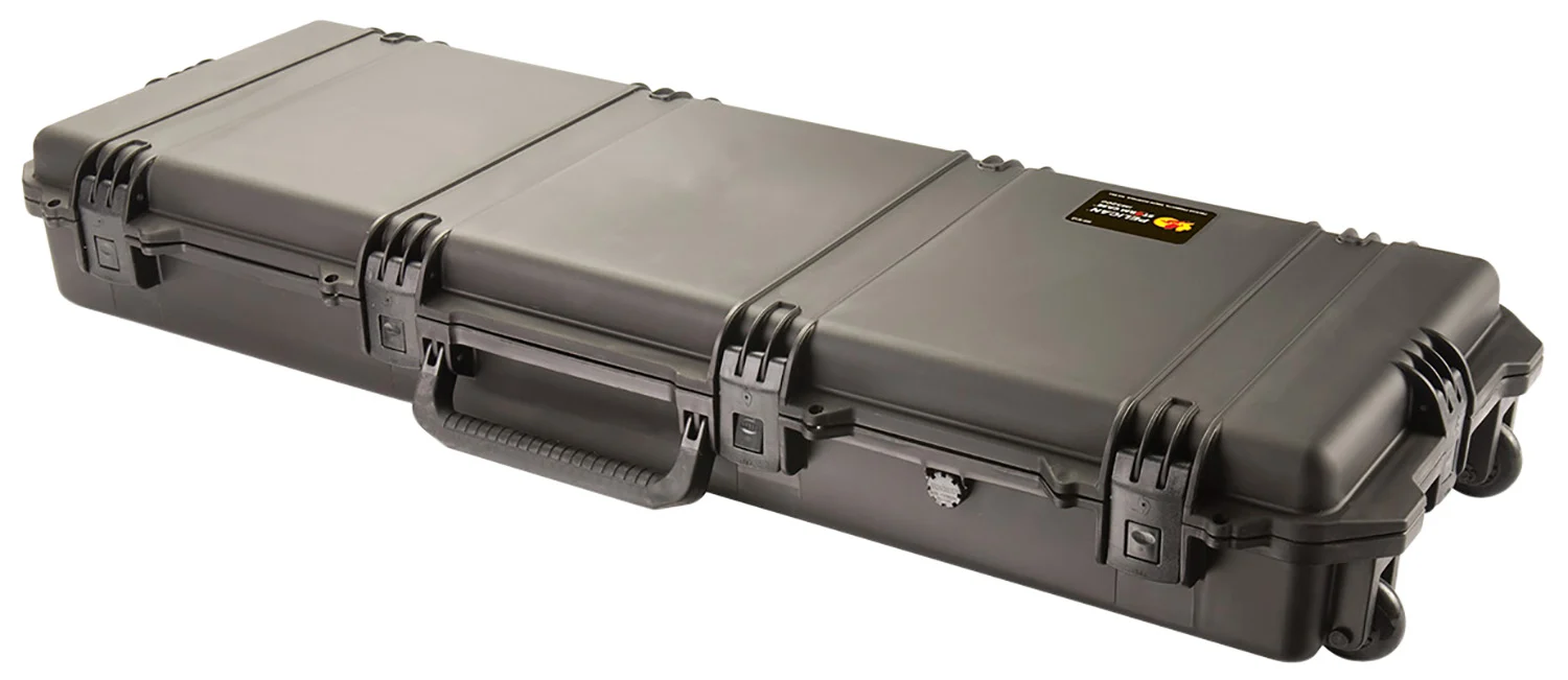 Pelican’s Storm Long Case has a unique Press and Pull latch that locks automatically, but opens with a light touch. Featuring six press and pull latches, two double layered soft grip handle, two padlockable hasps, O-ring seal and a Vortex valve. Made in the USA.