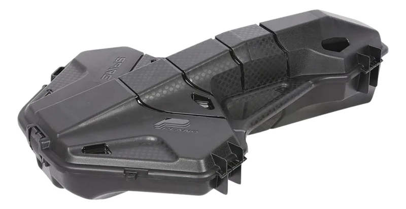 Perfect fit means perfect protection. With a dynamic design and the dependable craftsmanship that you expect from a Plano hard case, Plano’s SPIRE Crossbow Case provides excellent protection, high-density foam padding, balanced carry handles, quiver storage and easily fits all major crossbow brands. PLANO SPIRE CROSSBOW CARRY CASE: Sleek hard case storage designed to safely transport your bow (with scope attached), quiver, and bolts to your next competition or hunting adventure.HIGH-DENSITY POLY FOAM protects the fit, finish, and alignment, including any attached optics. Lashing straps hold your crossbow in place inside the hard-shelled, crushproof case.THREE HEAVY DUTY SECURITY LATCHES and padlocks provide supreme protection during transport, while securing your investment away from curious eyes and hands.CONVENIENT CARRY AND STORAGE: Designed with a sturdy and well-balanced handle, and stands on its side to maximize remaining floor, shelf, or truck bed space. Separate quiver storage in base of case.PERFECT FIT, PERFECT PROTECTION: Fits most of today’s standard crossbows with scope attached. Made in the USA.PRODUCT SPECIFICATIONS: Dimensions: 41.22″L x 27.5″W x 12.25″H. Black.