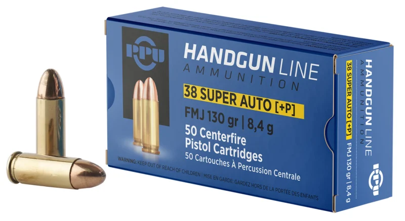 PPU PPH38SU Handgun 38Super+P 130gr Full Metal Jacket 50 Per Box/10 Case