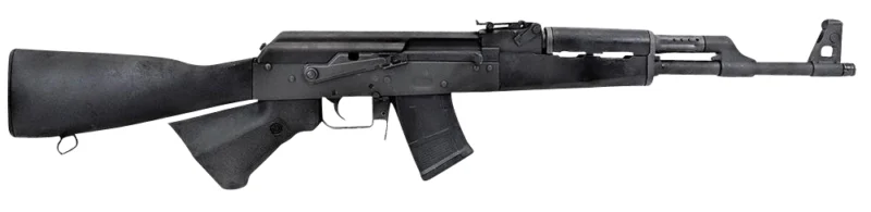This is a CA-compliant, milled receiver AK rifle, chambered in .308 WIN caliber and built by Riley Defense on a mil-spec, surplus kit with adequate American components to make it 922r compliant. The wood furniture has the markings, dents, and dings illustrating the battlefield-pickup origins of this rifle and ranging in color from light to dark brown.