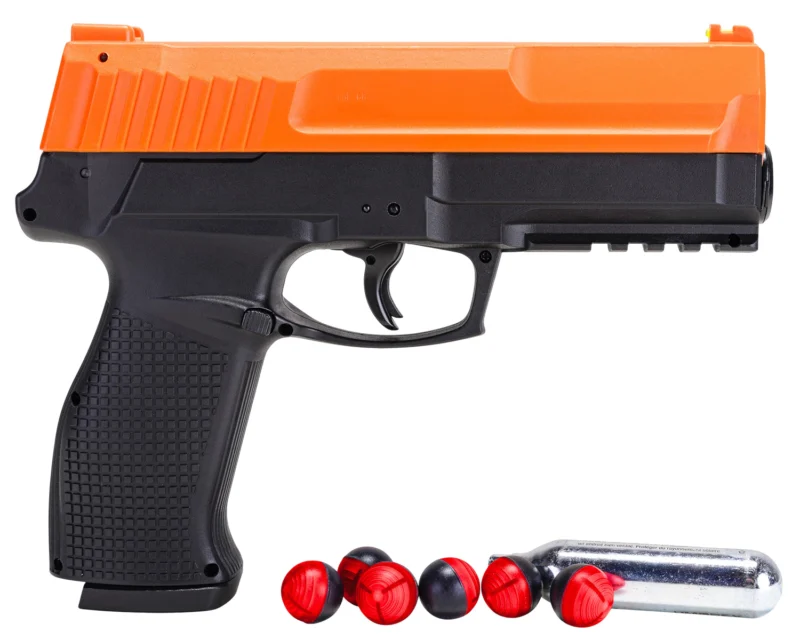 The SABRE Projectile Launcher is an effective home security and personal safety option to protect your family. This easy-to-use Projectile Launcher can protect from a distance. Direct impact up to 60ft (18m) causes intense pain with a velocity range up to 330 FPS. Impact projectiles upon object contact causes intense pain to the intruder. Designed for better aim and increased accuracy, the rubber grip helps keep better control on the launcher. It features front and rear adjustable fiber optic sights for better aiming visibility in low light conditions. The SABRE Launcher has no recoil and the lightweight design makes it easier to use and handle. This Home Defense Kit includes: Projectile Launcher, 7 Impact projectiles, 7 Inert practice projectiles, 1 practice target, 2 12g CO2 cartridges, and a padded soft carry case.