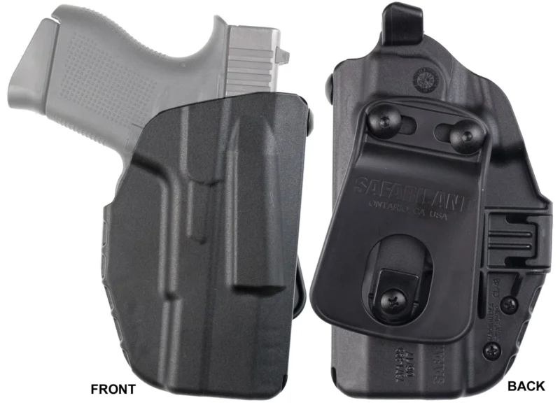 The Safariland Model 7371 Holster combines the security of ALS with the speed and simplicity of an open-top design. The ALS secures your weapon automatically as it is holstered, yet still allows a fast, natural draw with the swipe of the thumb release as you acquire your shooting grip. Built from durable, weather- and temperature-resistant SafariSeven non-marking nylon blend, the 7371 will not scratch or mar the finish of your firearm, and its raised interior stand-offs allow dirt and moisture to clear quickly. The 7371 comes with the 571BL Paddle, its small footprint is specifically designed for sub compact firearms. Compatible with Glock 43.