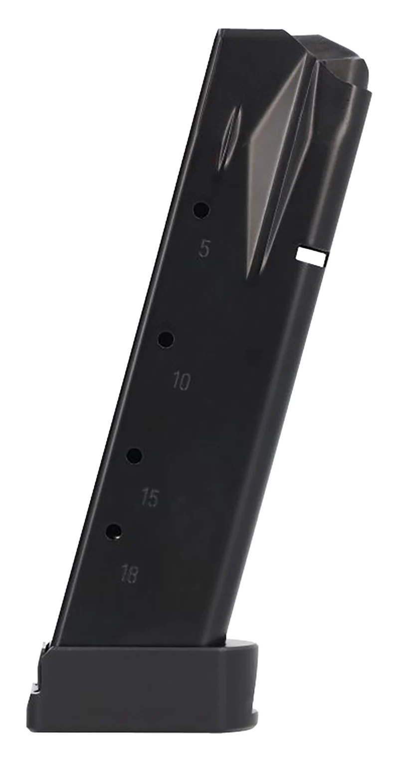 20-round steel magazine for the SIG SAUER P226-XFIVE pistols chambered in 9mm. Featuring a durable aluminum basepad with a front serration for added grip when handling. Compatible with all 9mm P226-XFIVE and P226 firearms including MK-25