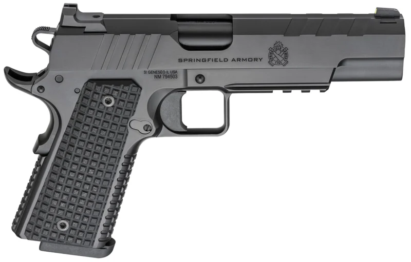 The fully blacked-out Emissary features a Cerakote finish that combines with custom 1911-style features and enhancements to offer a serious defensive pistol. Features a”Tri-Top” cut to the slide with light diffusing 40 LPI flat-top serrations; heavy-profile, match grade, bull barrel; Picatinny rail; all black Cerakote; Tritium/Luminescent front sights, Tactical Rack U-Notch rear sights; VZ Grips Thin Line G10. Includes two magazines and case.
