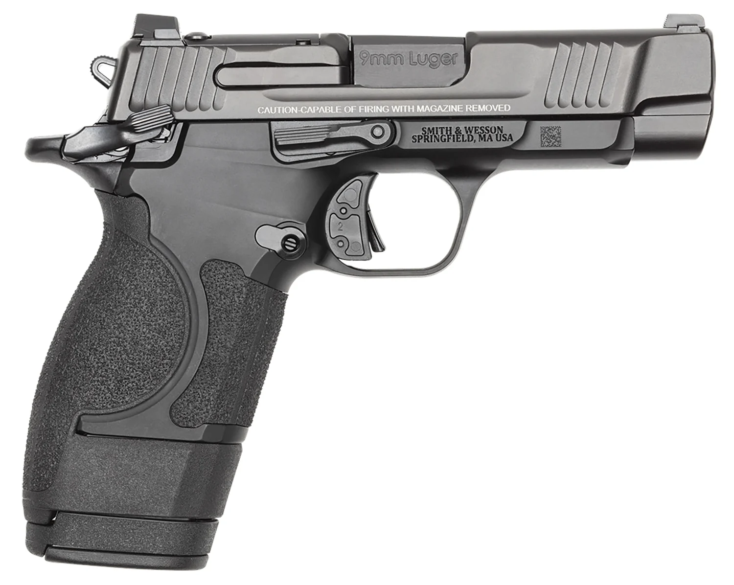 Modular grip adapter – The included adapter converts the grip between micro-compact and compact profiles to tailor concealment or handling. E-Series trigger – An enhanced trigger design provides a clean break and an improved reset to support consistent follow-up shots. Optics-ready – The slide is cut for a modified RMS-C/507K (Shield/RMSc) footprint and features a ClearSight cut on the slide.