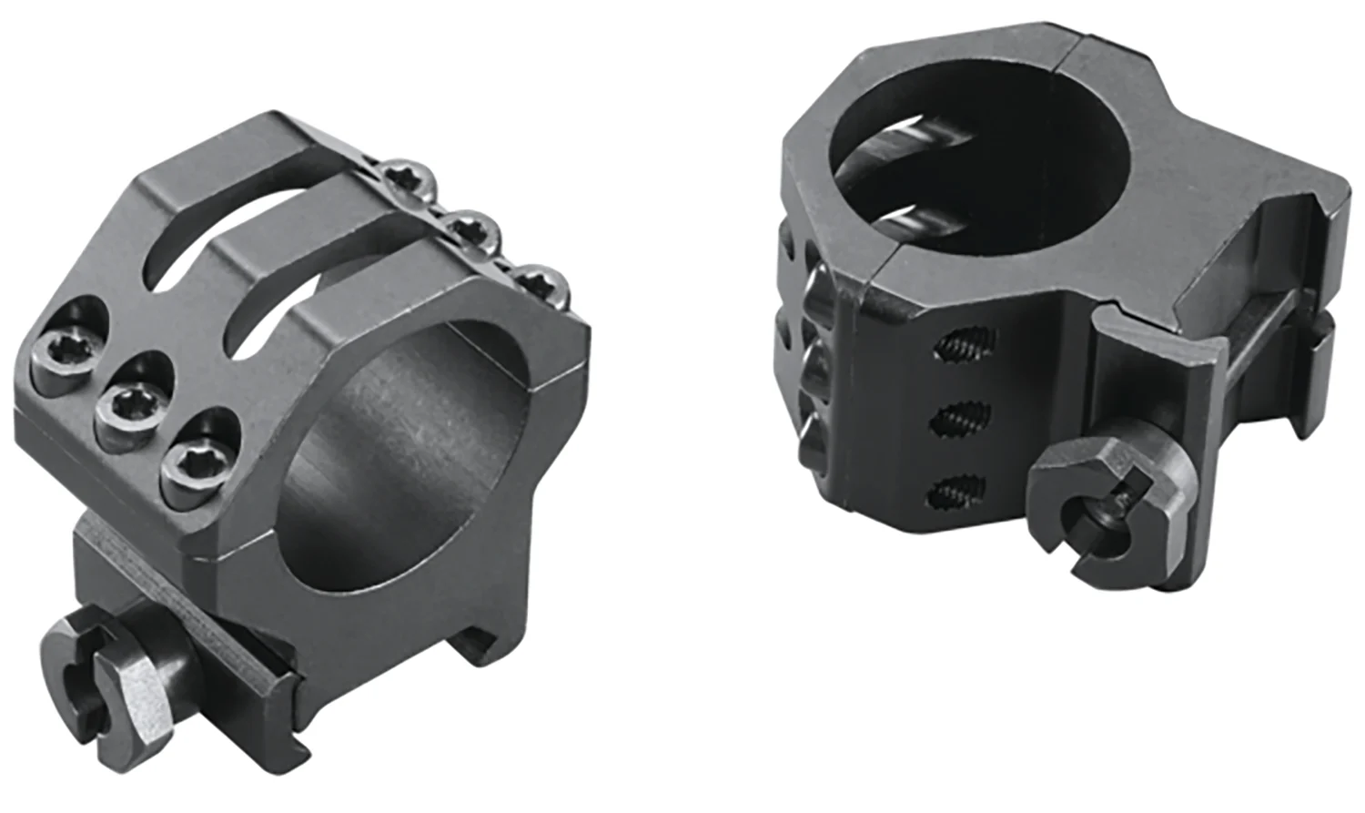 These aircraft-grade aluminum tactical rings feature six points of contact for maximum holding power and feature Weaver slot dimensions that allow them to be used on both Weaver and Picatinny rails and bases. Skeleton design reduces weight without losing strength and offers tactical styling.